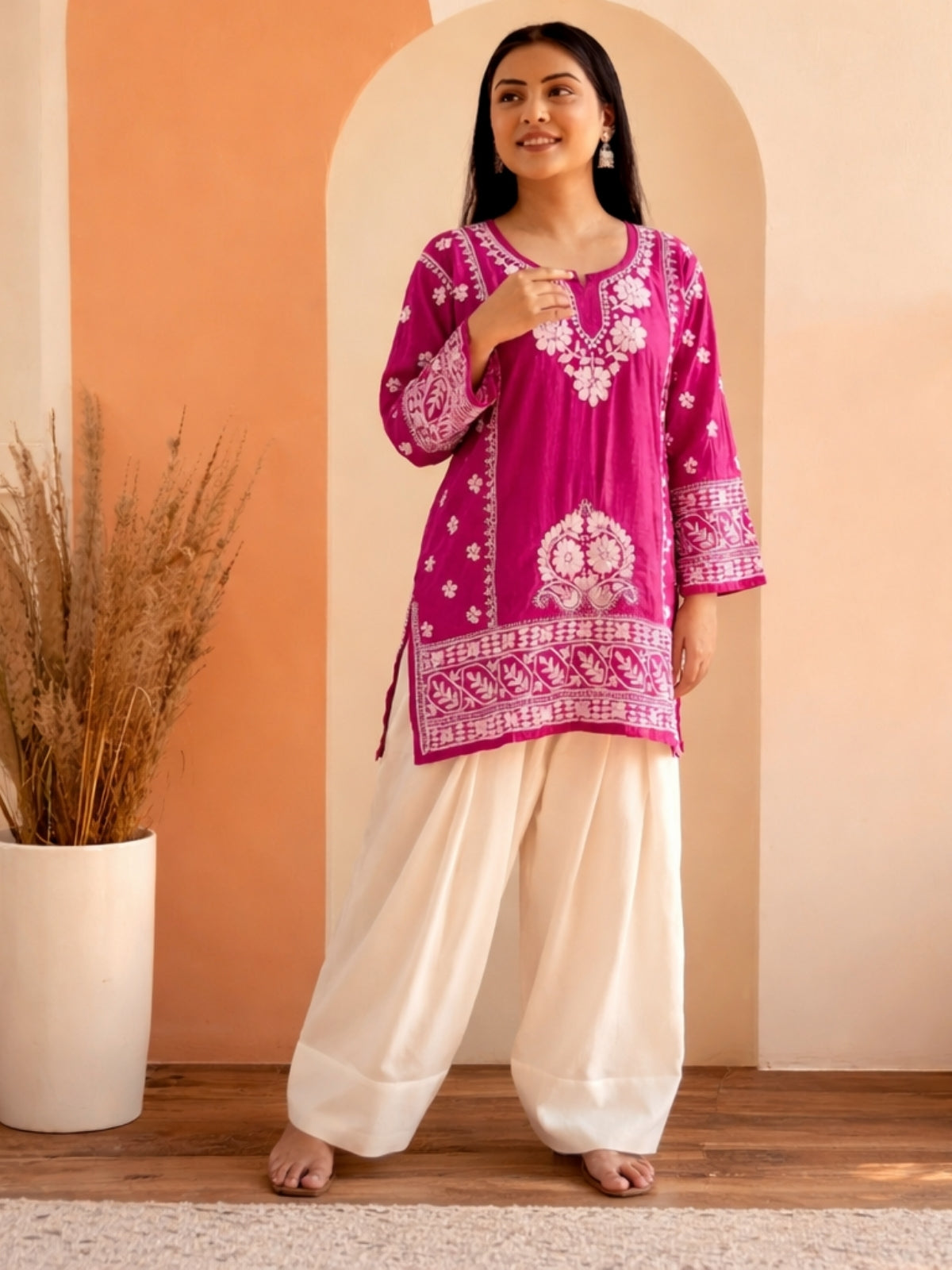 Rubina Dilaik embraces the timeless beauty of our Samara Modal Chikankari Kurti Palazzo Set – White Multi, bringing to life the essence of heritage redefined for today’s woman.