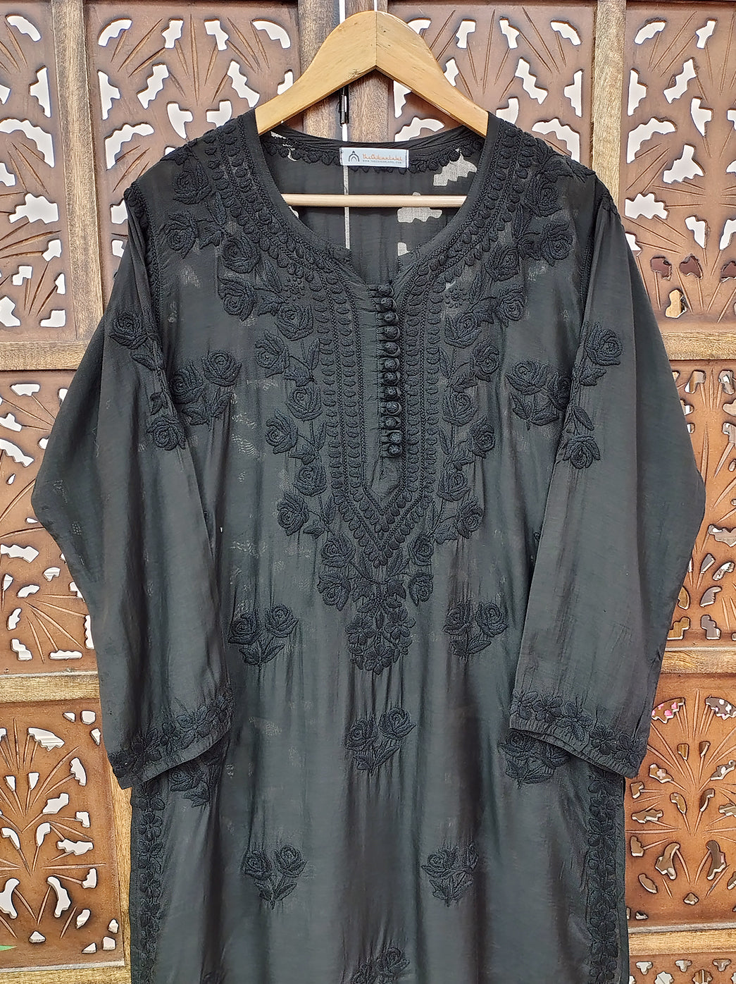 Elegant cotton chikankari kurti with straight fit and intricate hand embroidery for festive and office wear. Authentic Lucknowi chikankari kurti crafted from breathable cotton fabric with detailed floral embroidery.