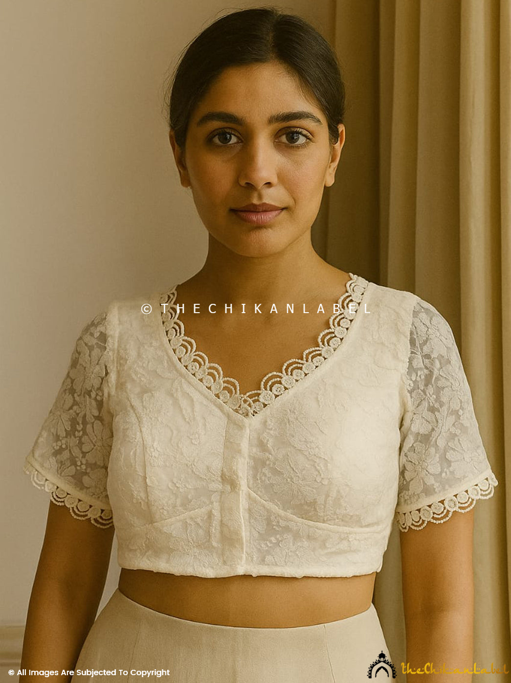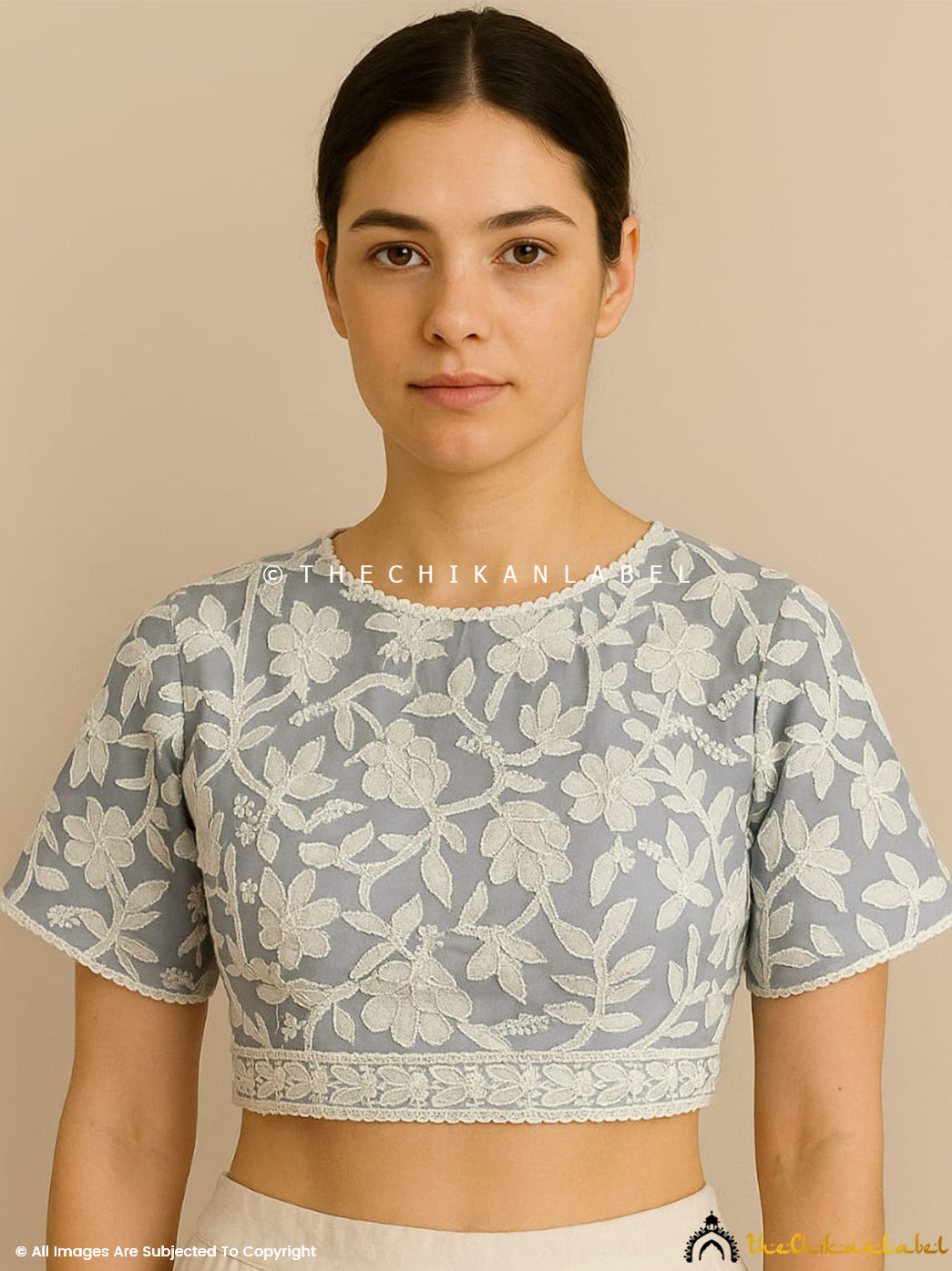 Premium modal short top with intricate chikankari embroidery for women’s ethnic wear. Trending chikankari short top crafted in soft modal fabric with elegant embroidery.