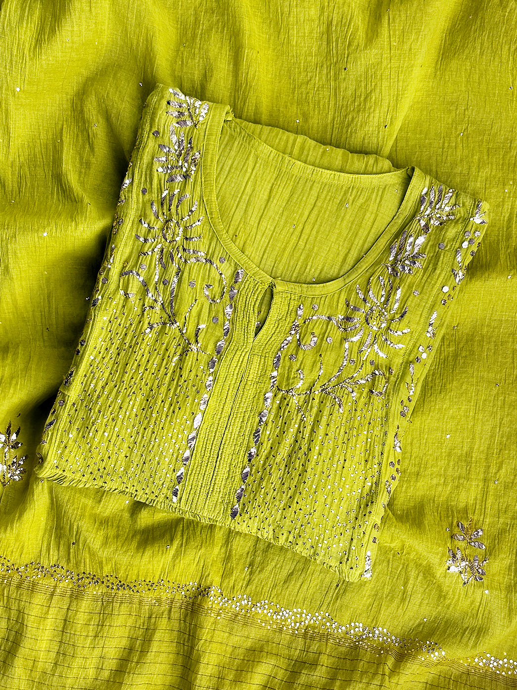 Navika Chanderi Chikankari Kurta Set with Dupatta - Green Navika Chanderi Chikankari Kurta Set with Dupatta - Green