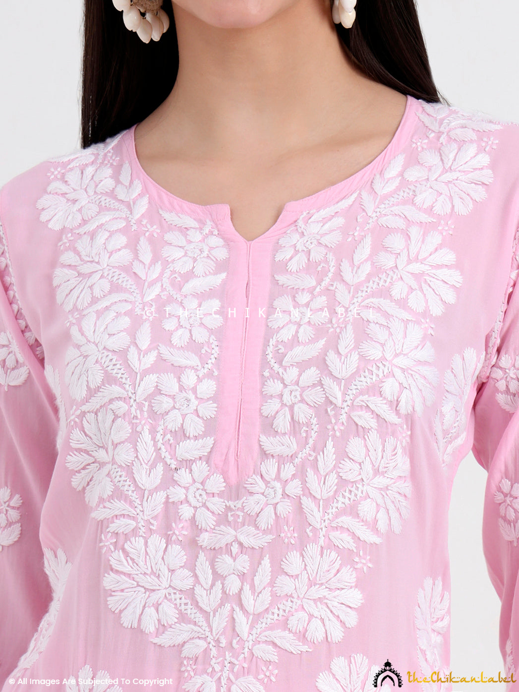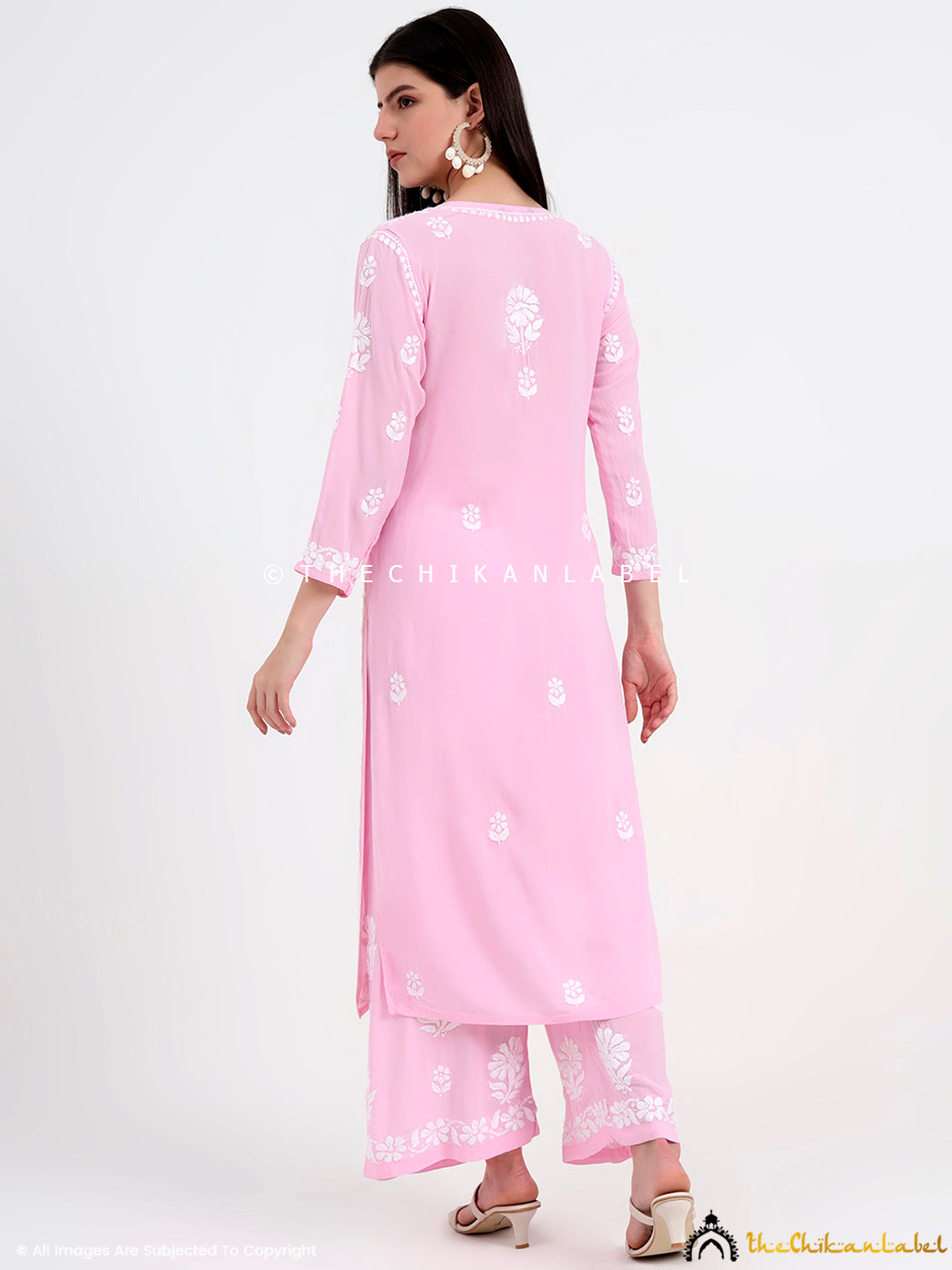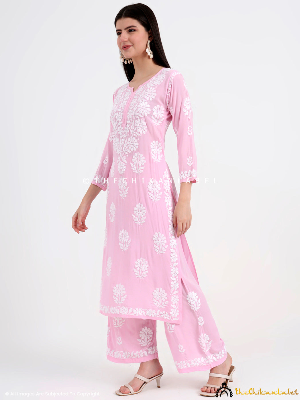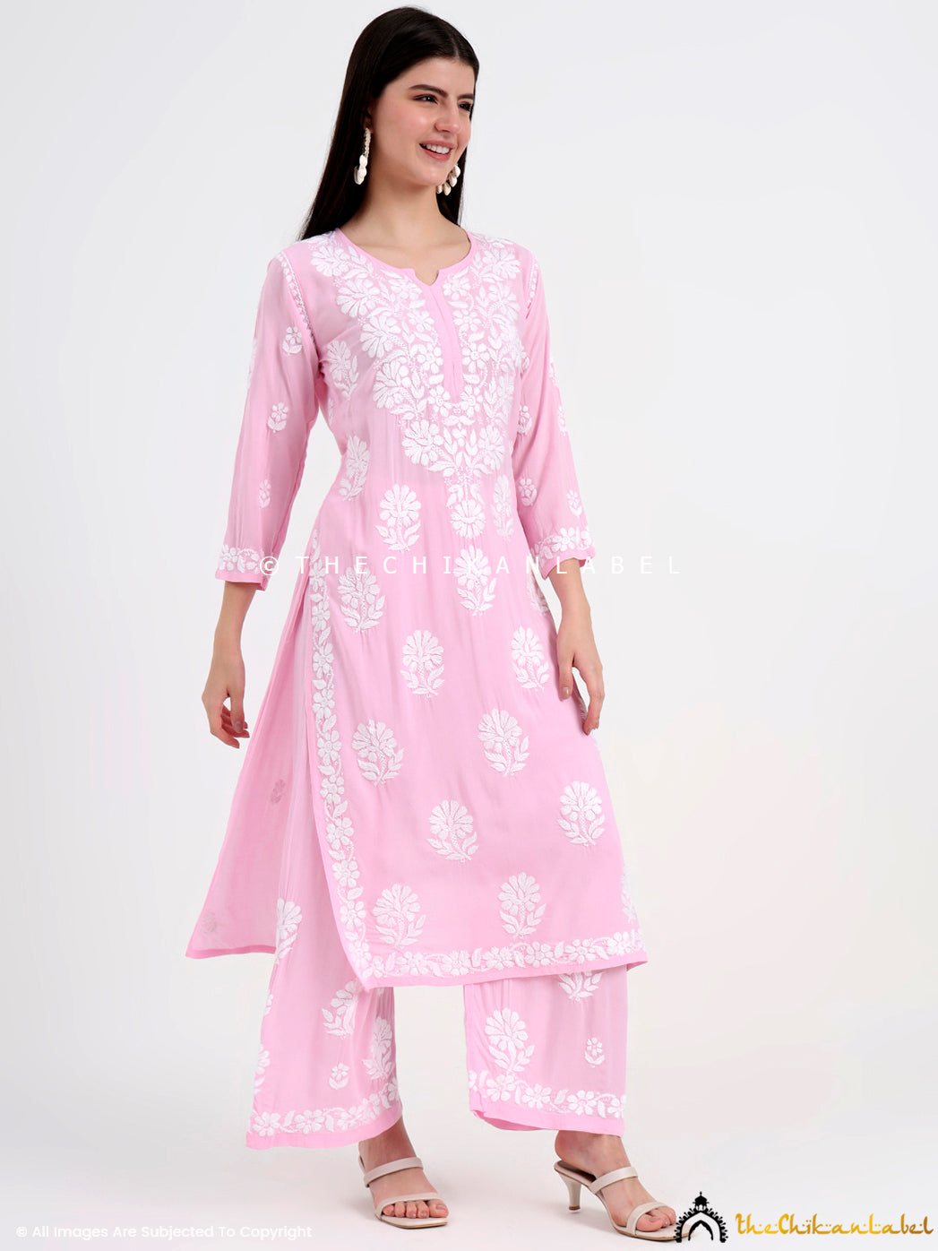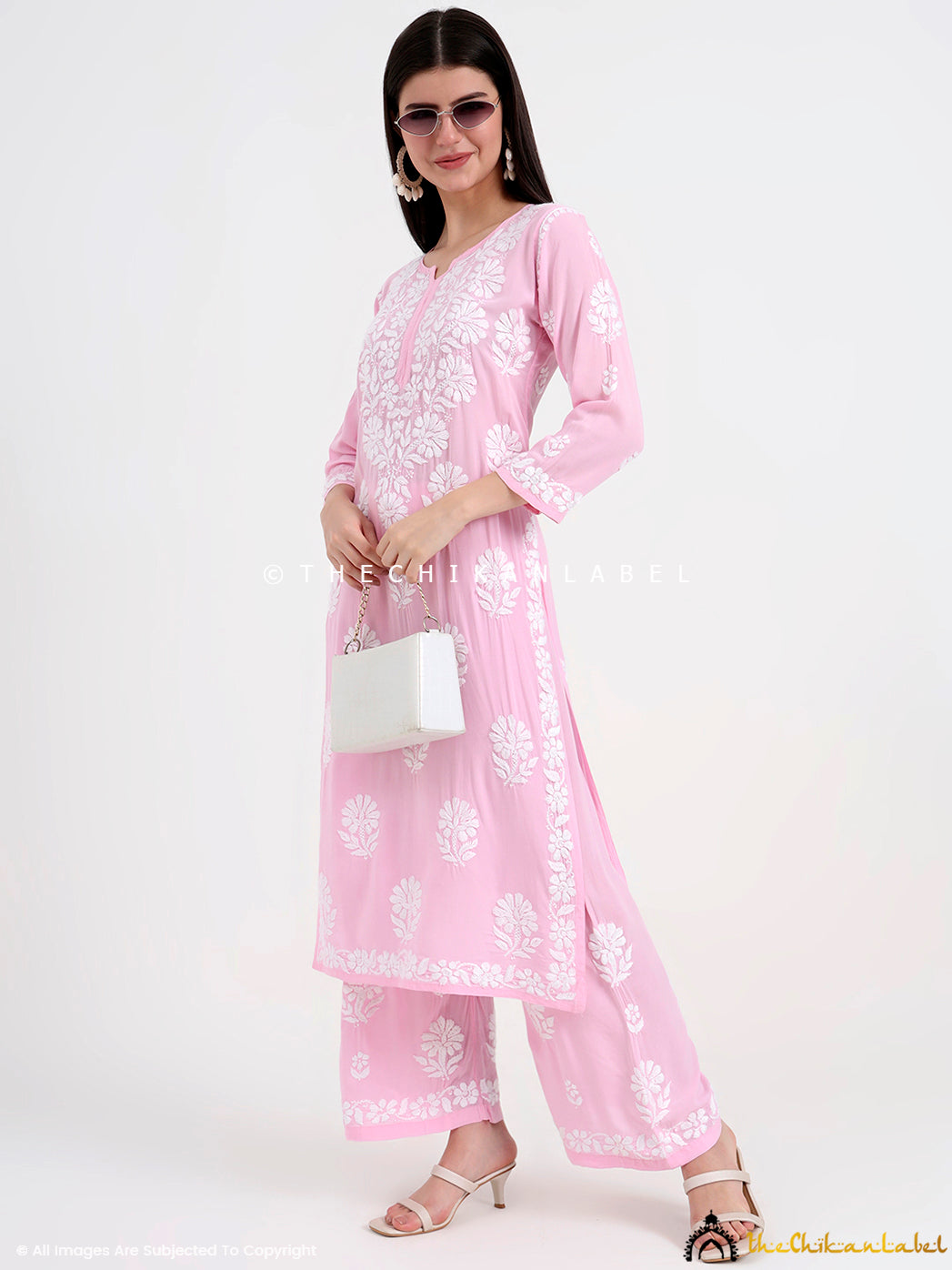 Tazmeen Modal Chikankari Kurti Palazzo Set - Baby Pink