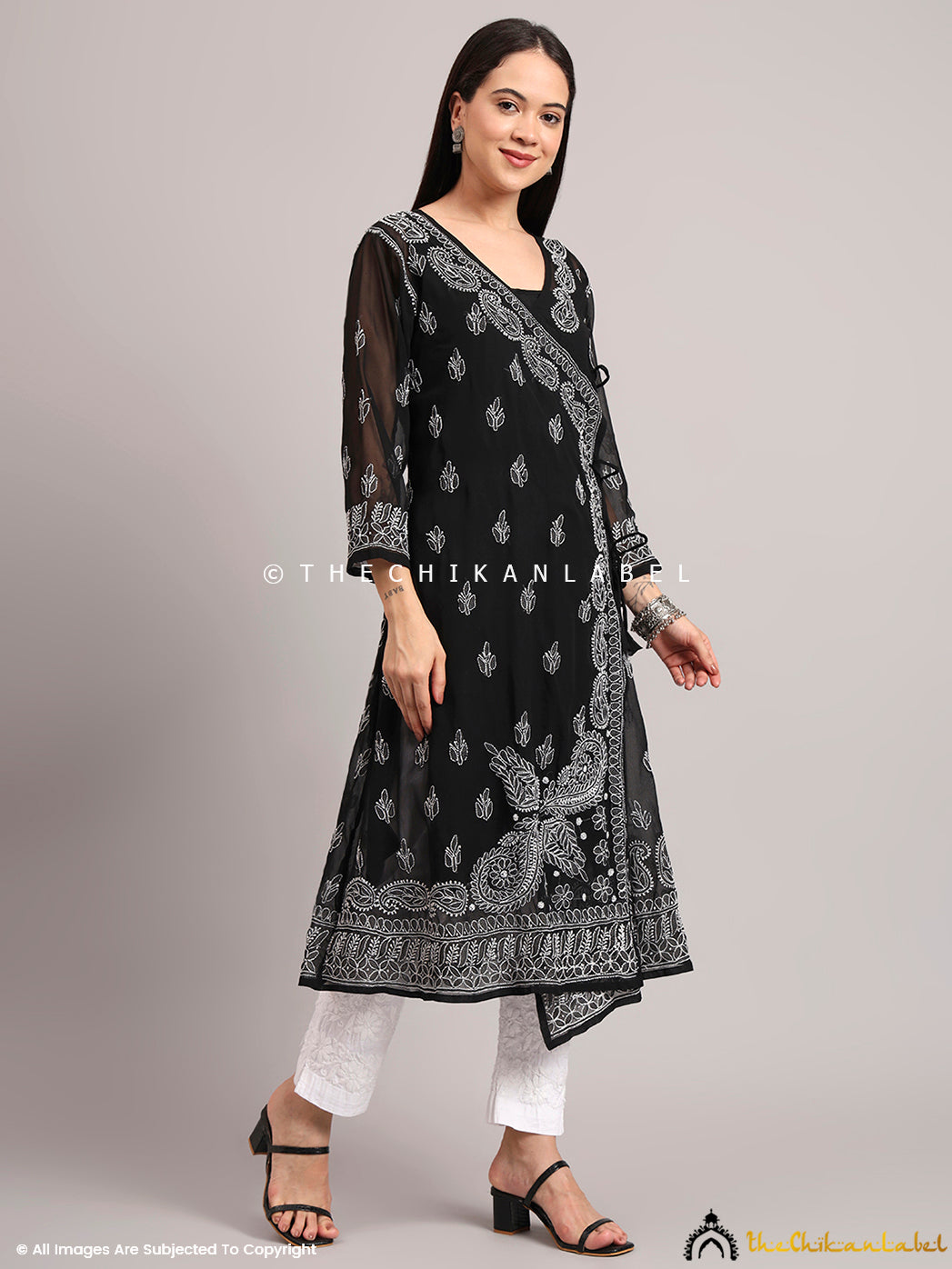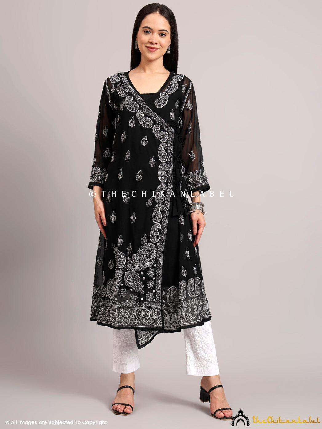 A7: Yes, the wrap-style Angrakha silhouette flatters most body types and offers adjustable comfort with its side tie-up.