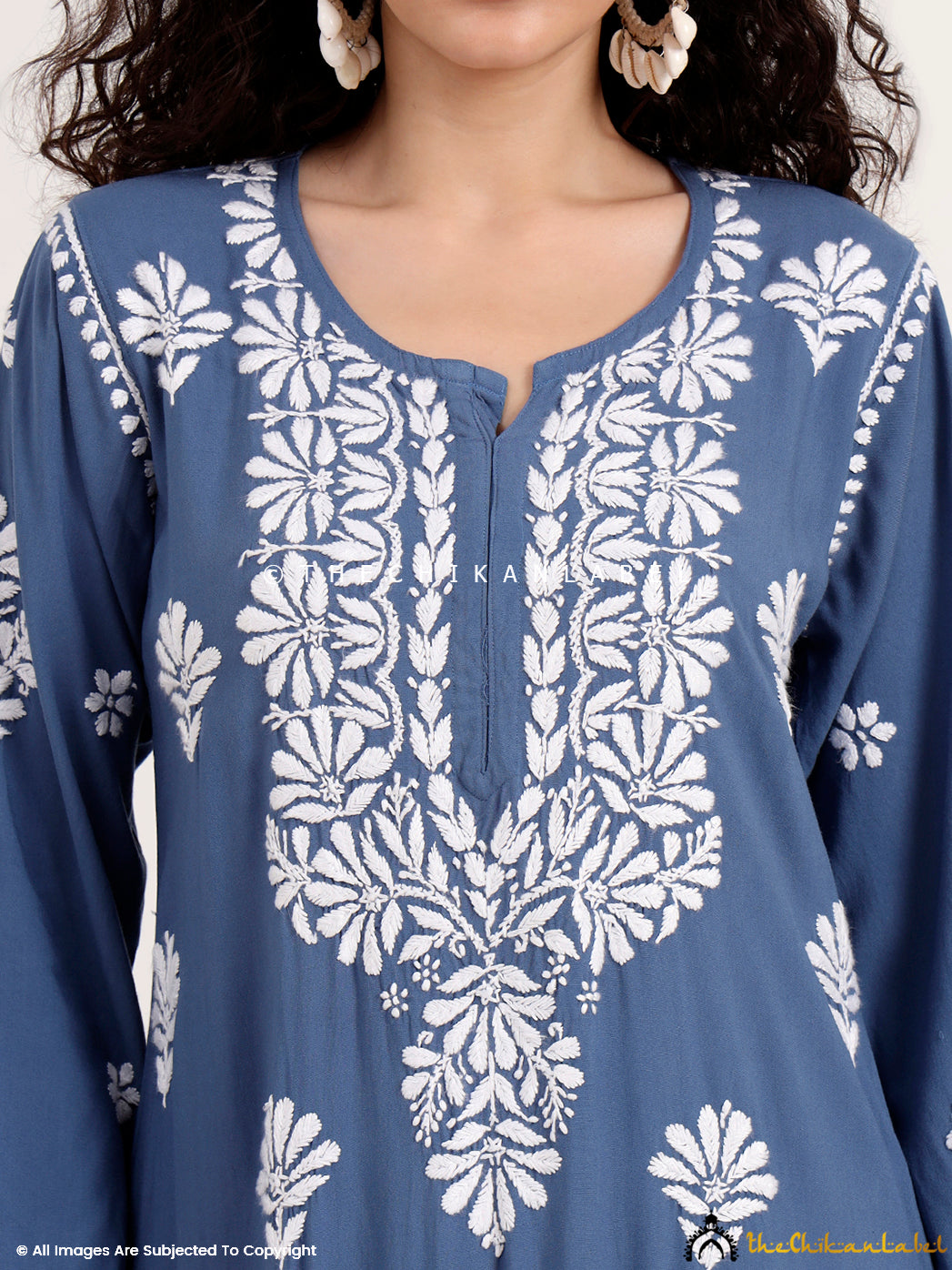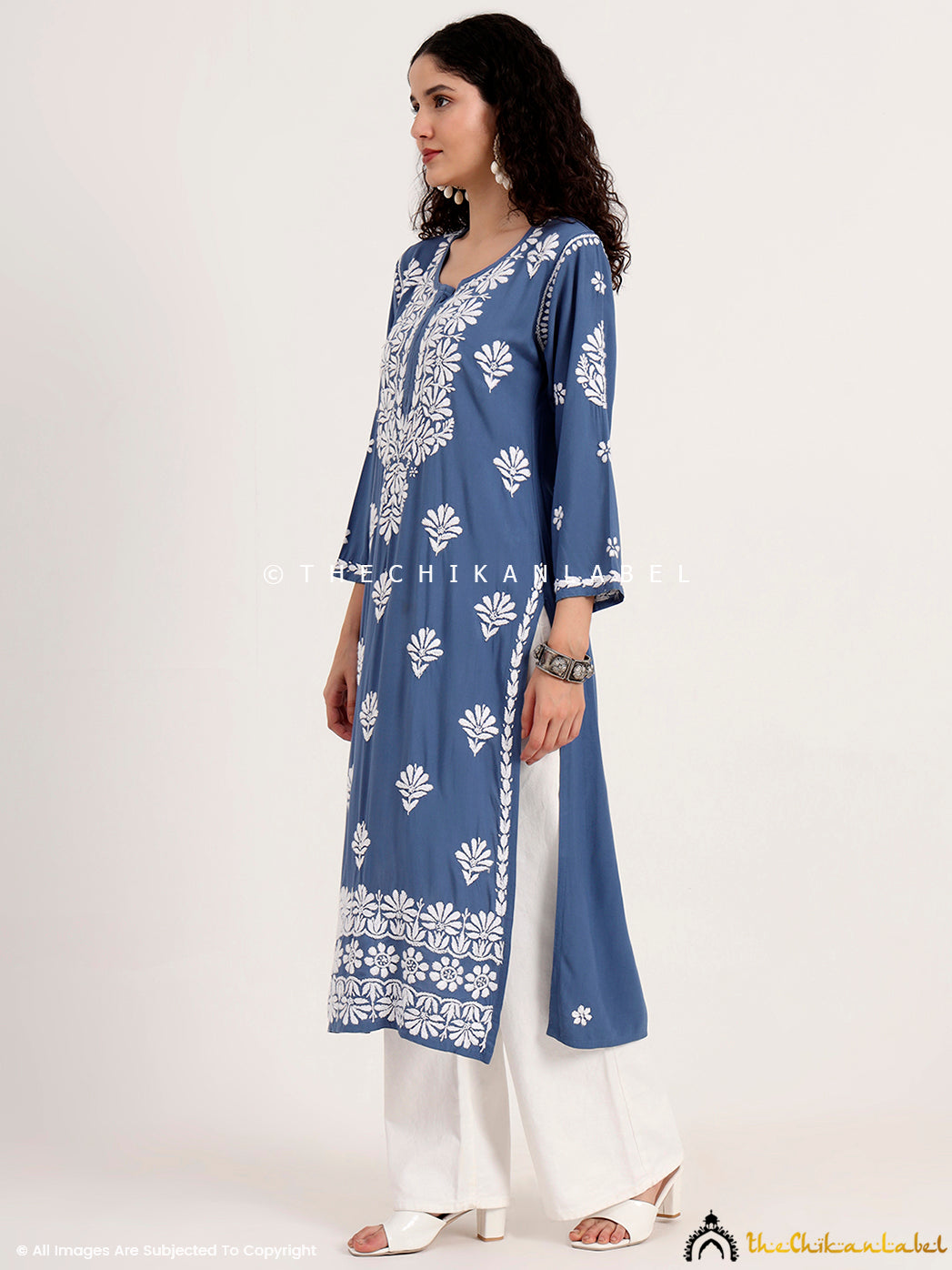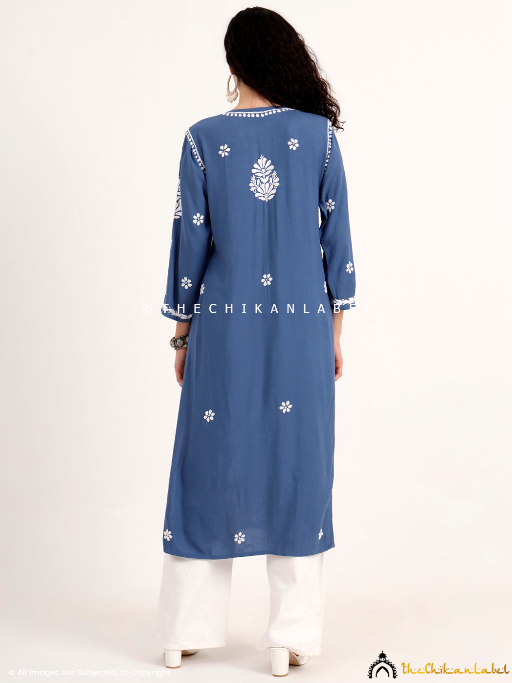 Hand-embroidered chikankari kurti in soft rayon fabric, ideal for creating ethnic looks that are both contemporary and timeless.