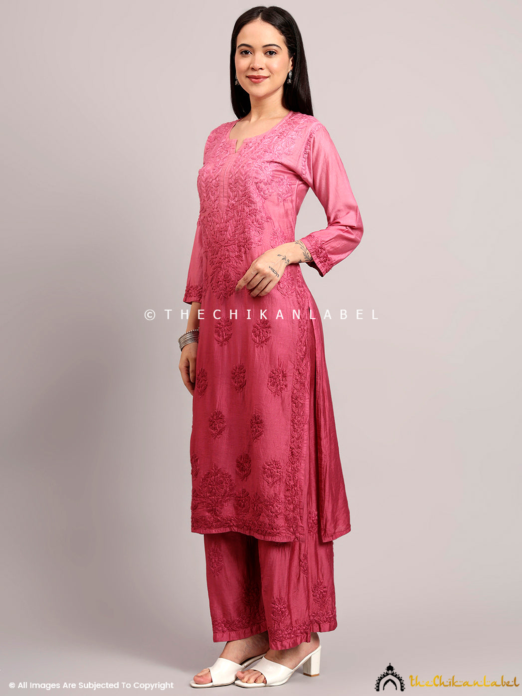 A8. This chikankari chanderi set is versatile enough for regular use, office, casual gatherings, festive lunches, or cultural celebrations.