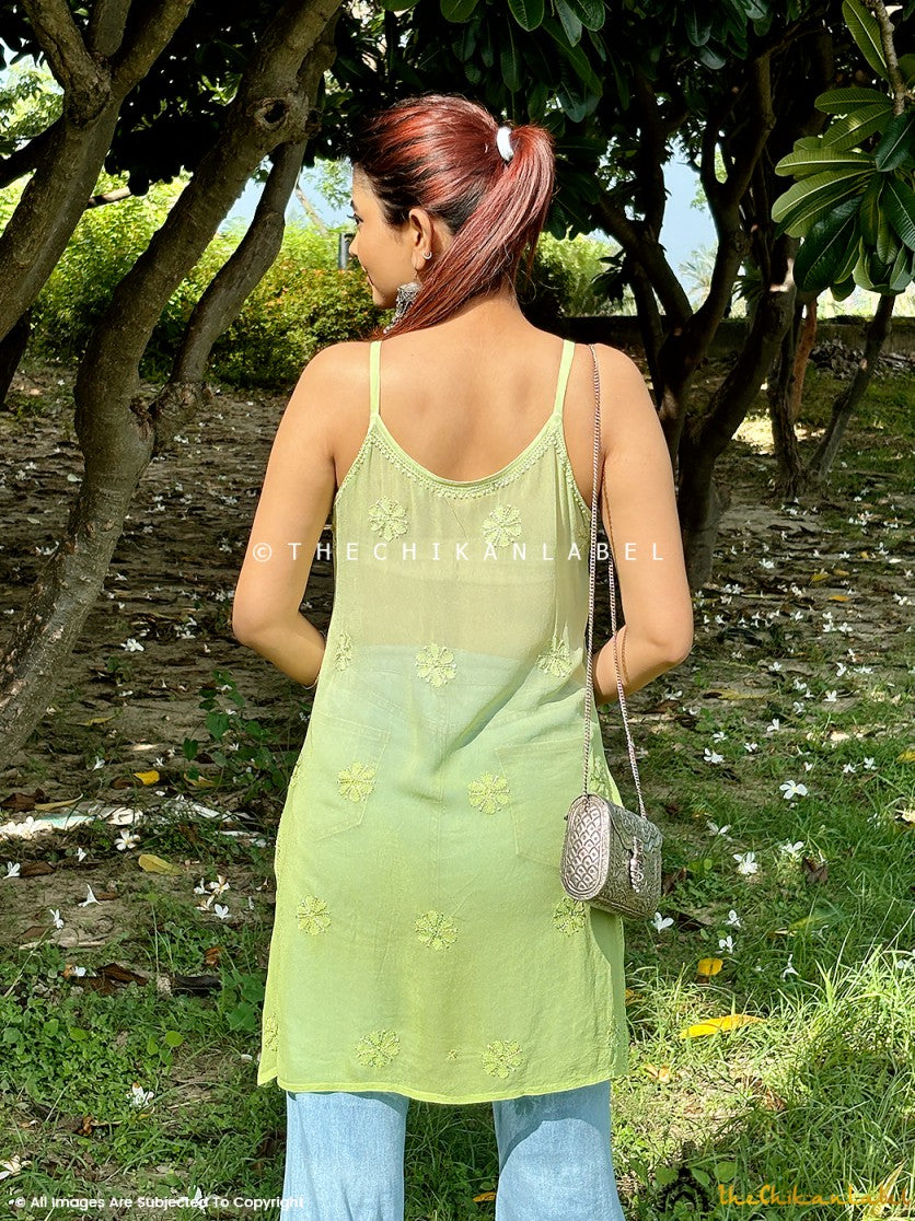 Green Jia Viscose Chikankari Strappy Short Kurta