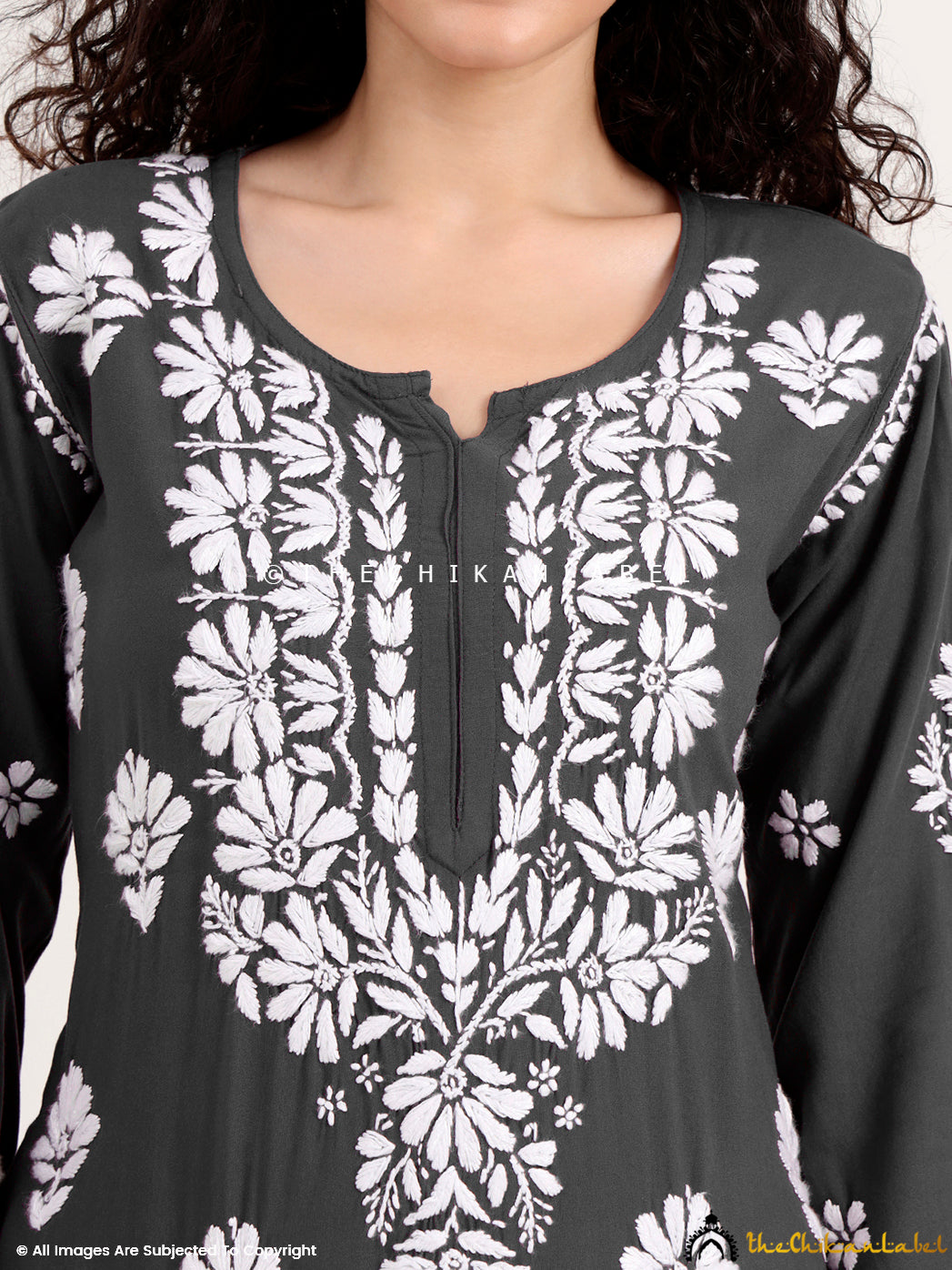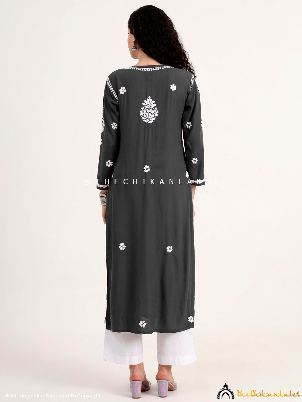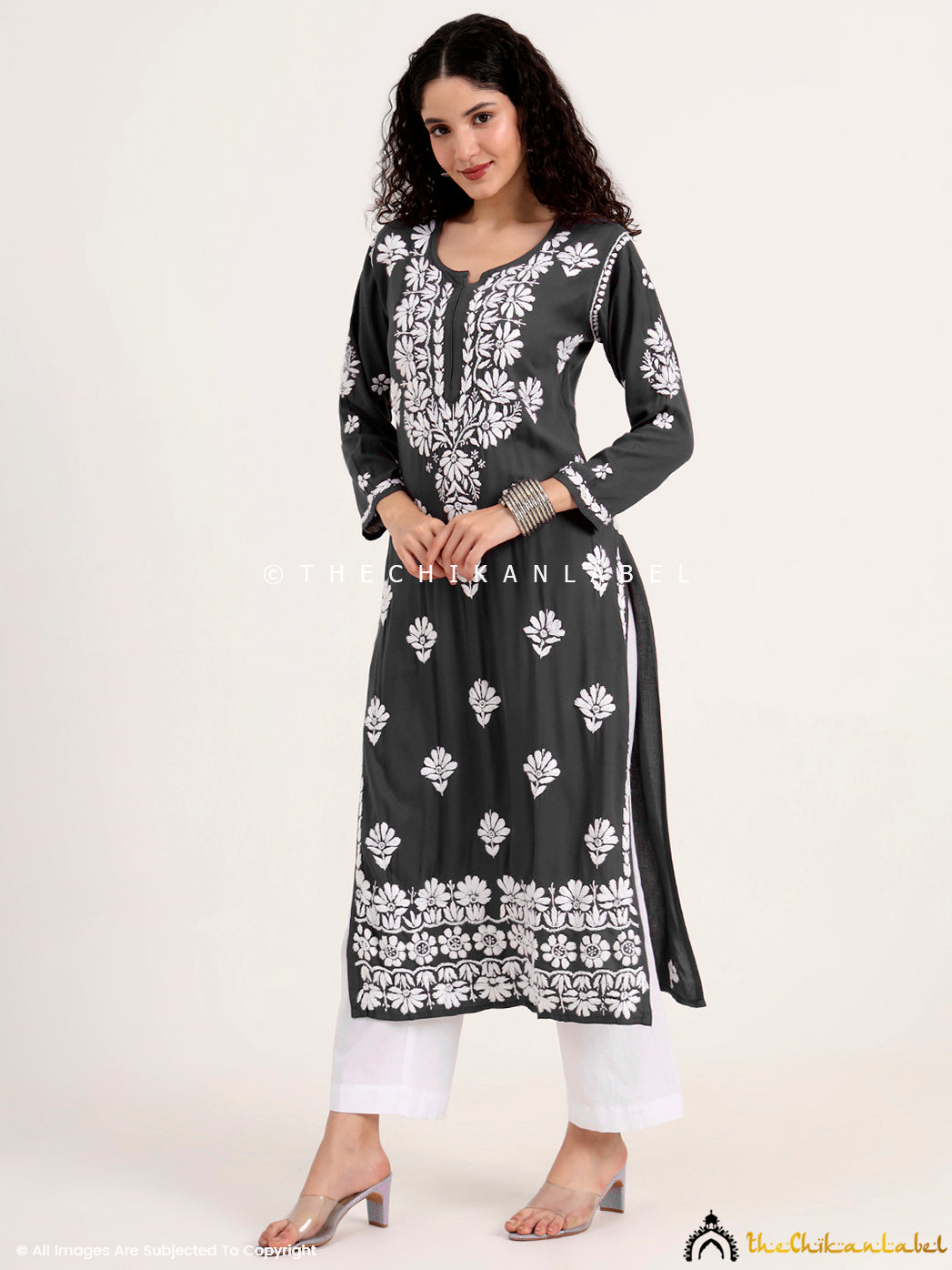 Handcrafted trending chikankari kurti with intricate threadwork and lightweight rayon fabric, designed for graceful ethnic dressing in any season.