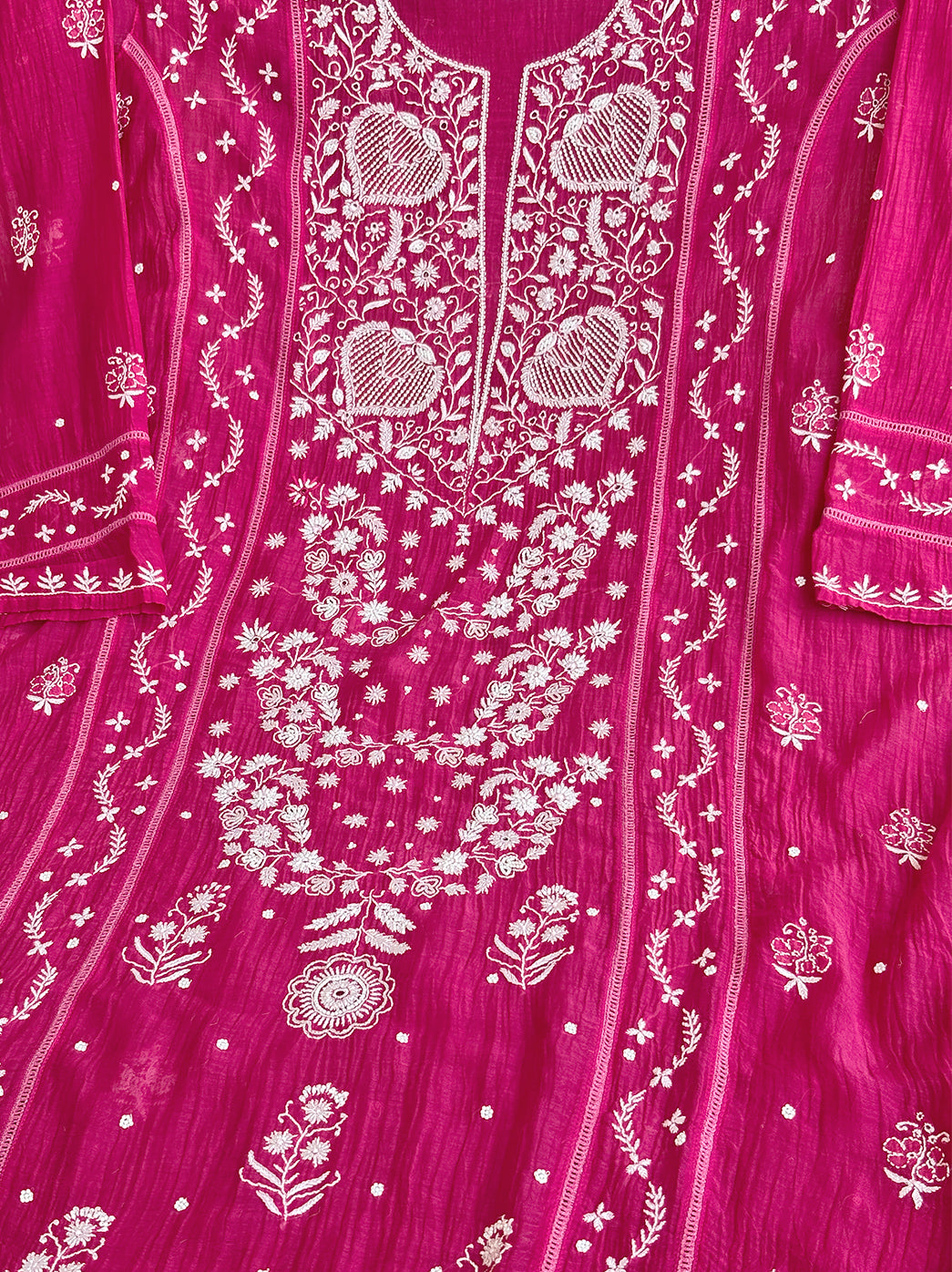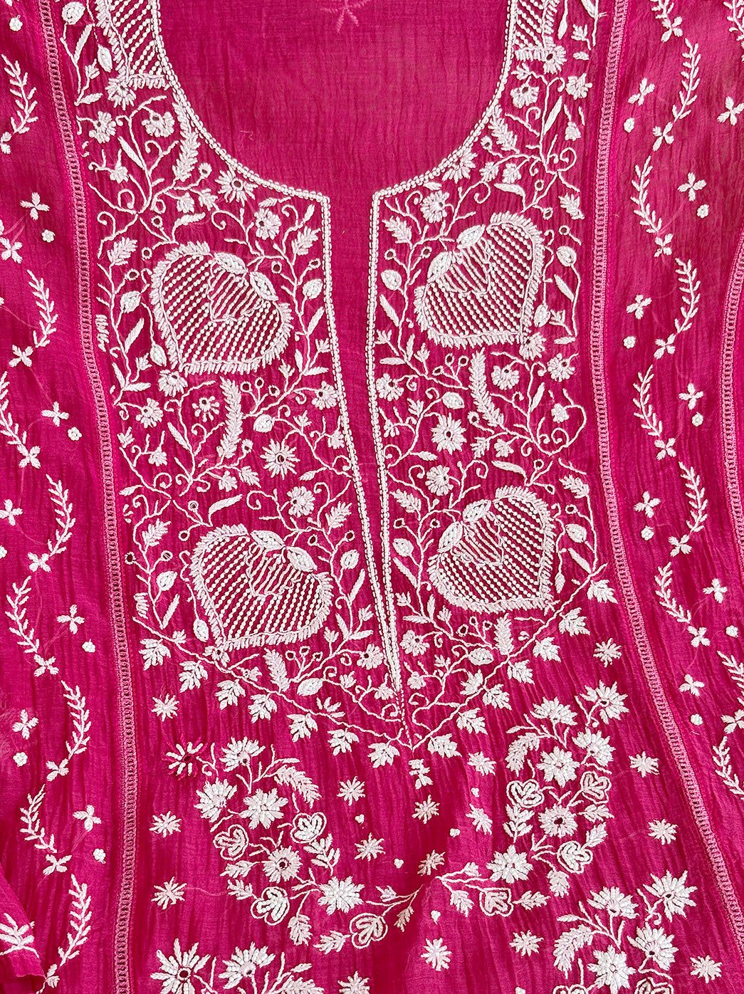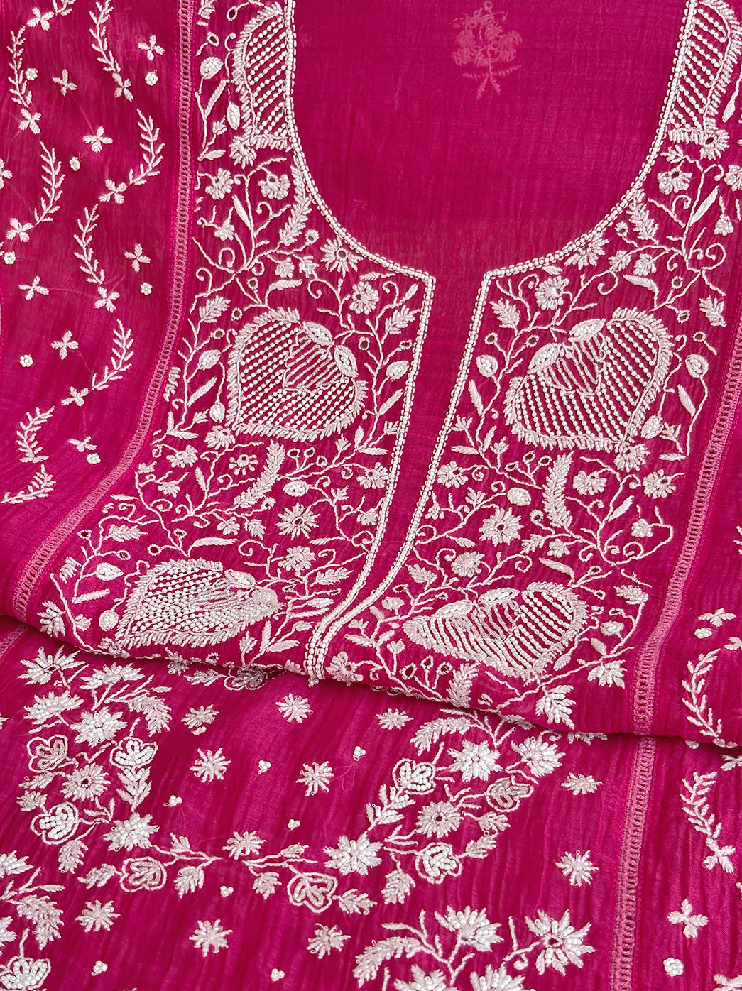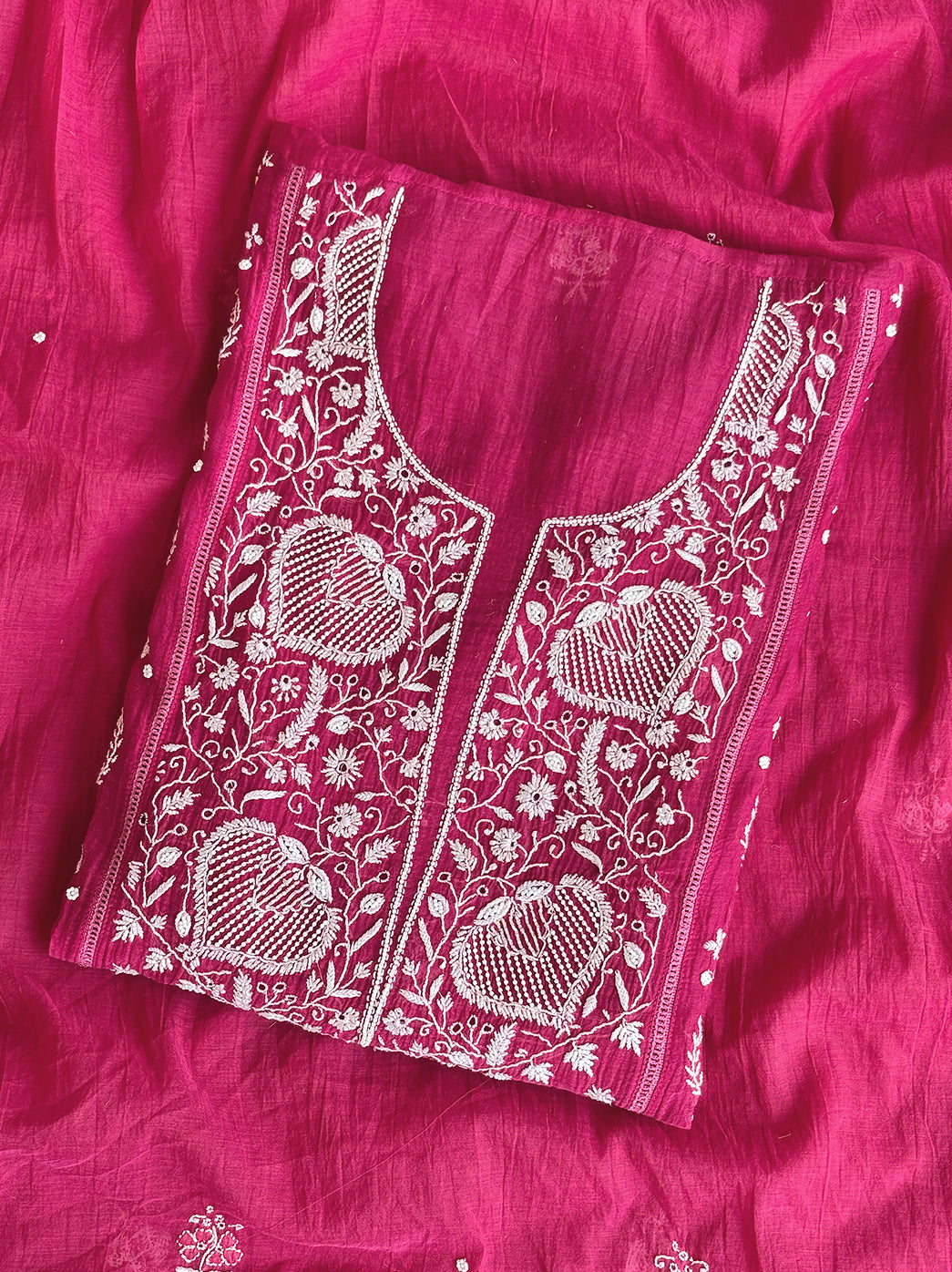 Hot Pink Mul Chanderi Un-stitched Chikankari Kurti Piece with Dupatta