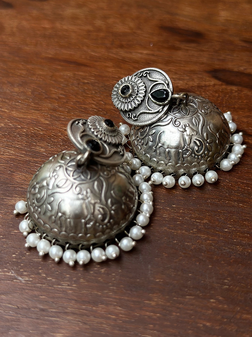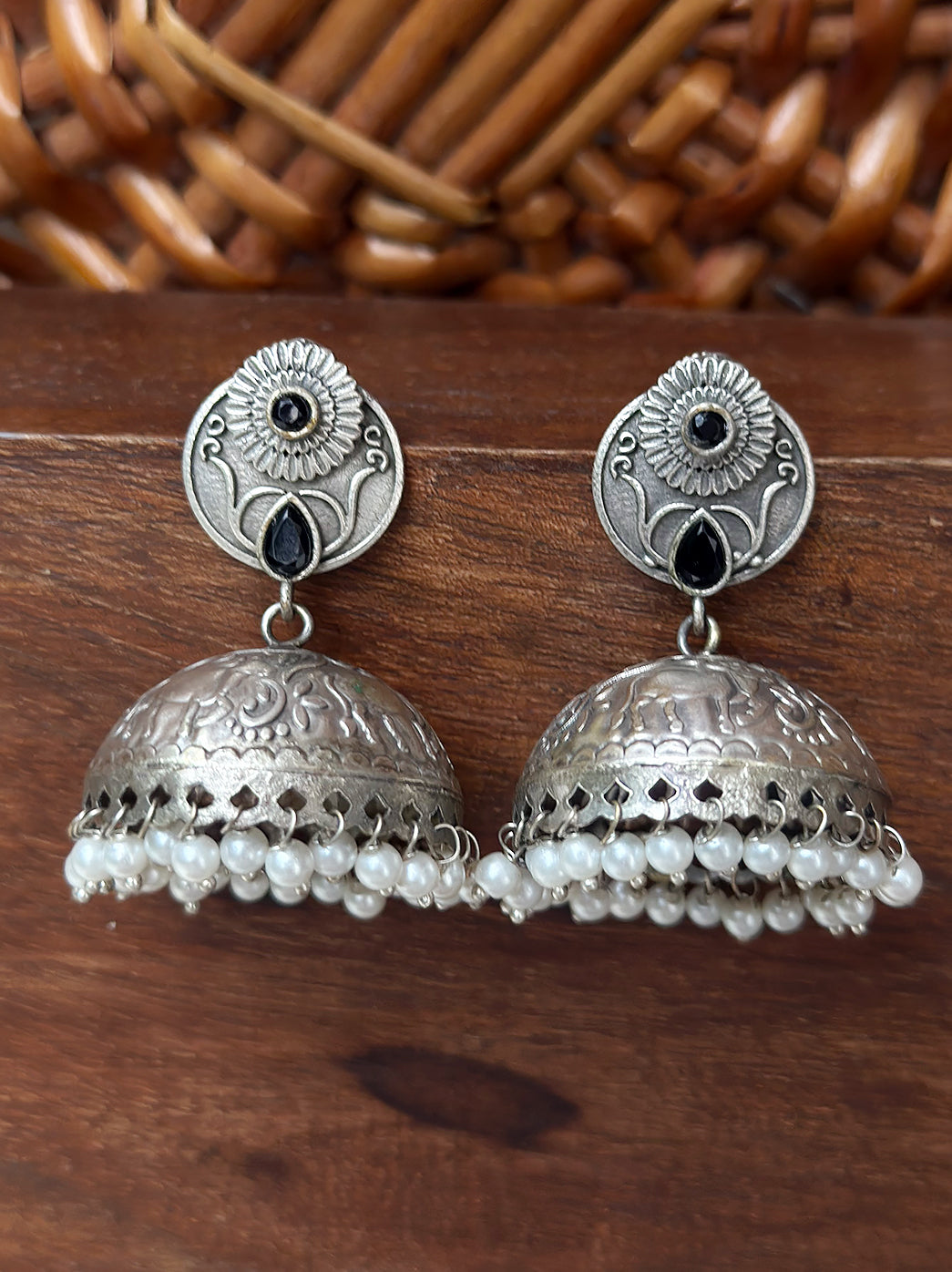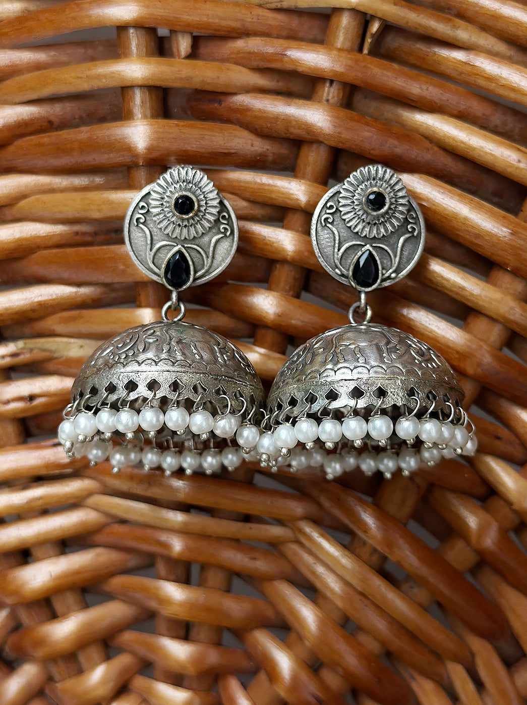 Oxidized Handcrafted Black Kundan Jhumka Earring with Pearl