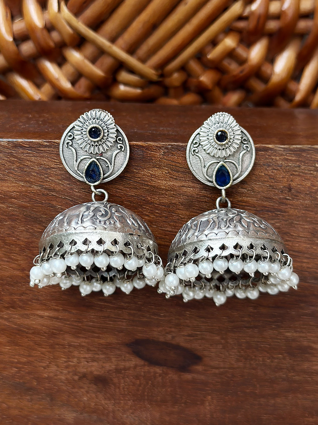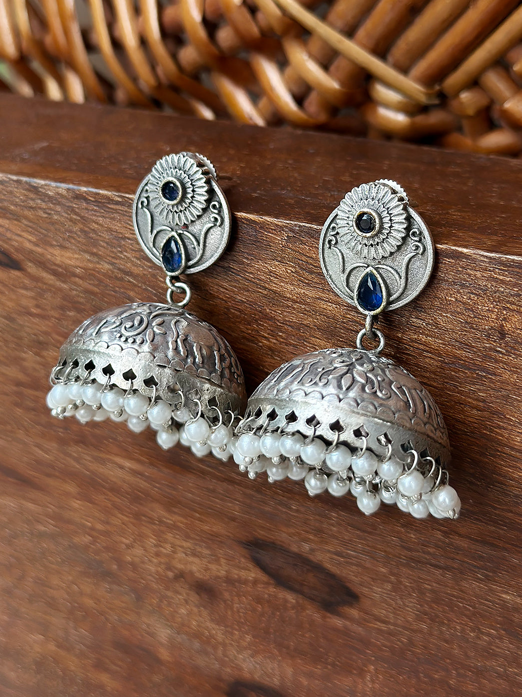 Oxidized Handcrafted Blue Kundan Jhumka Earring with Pearl