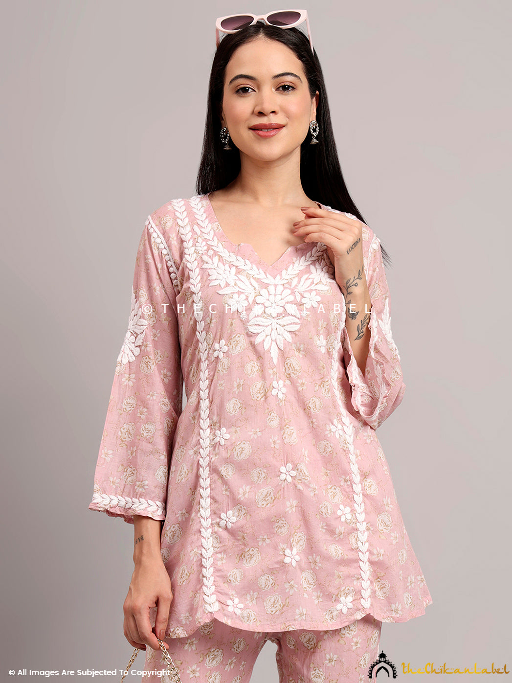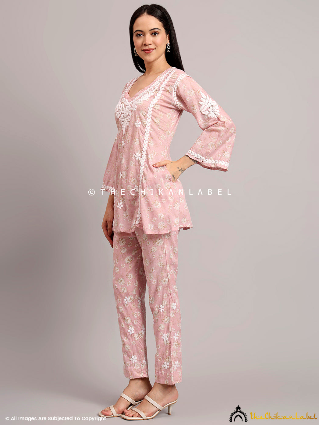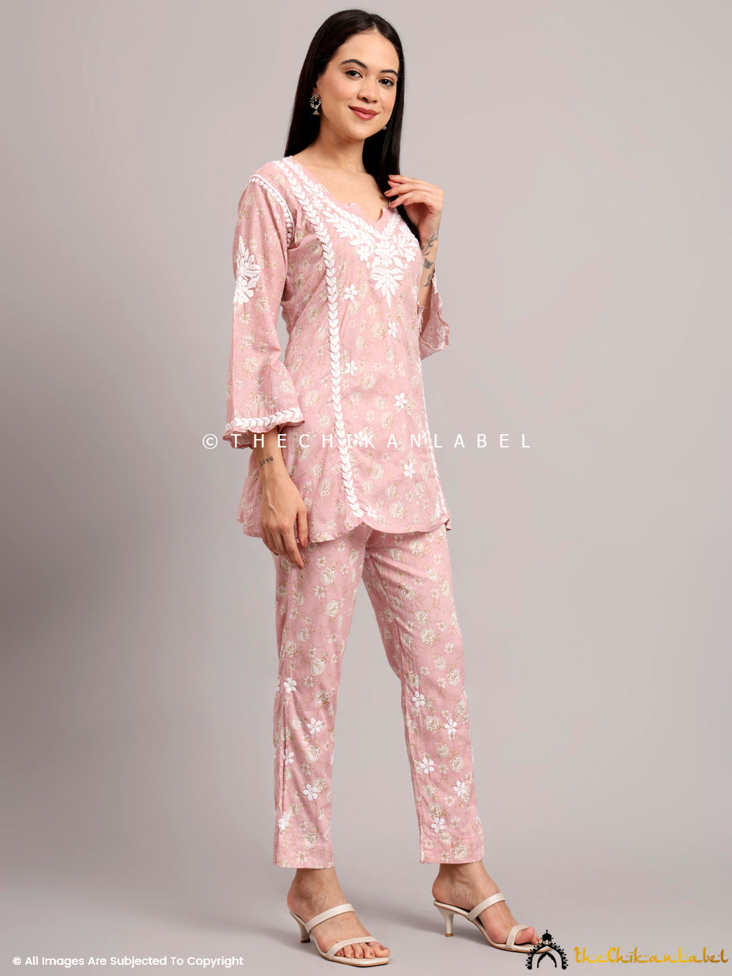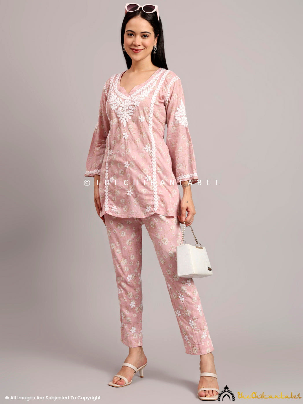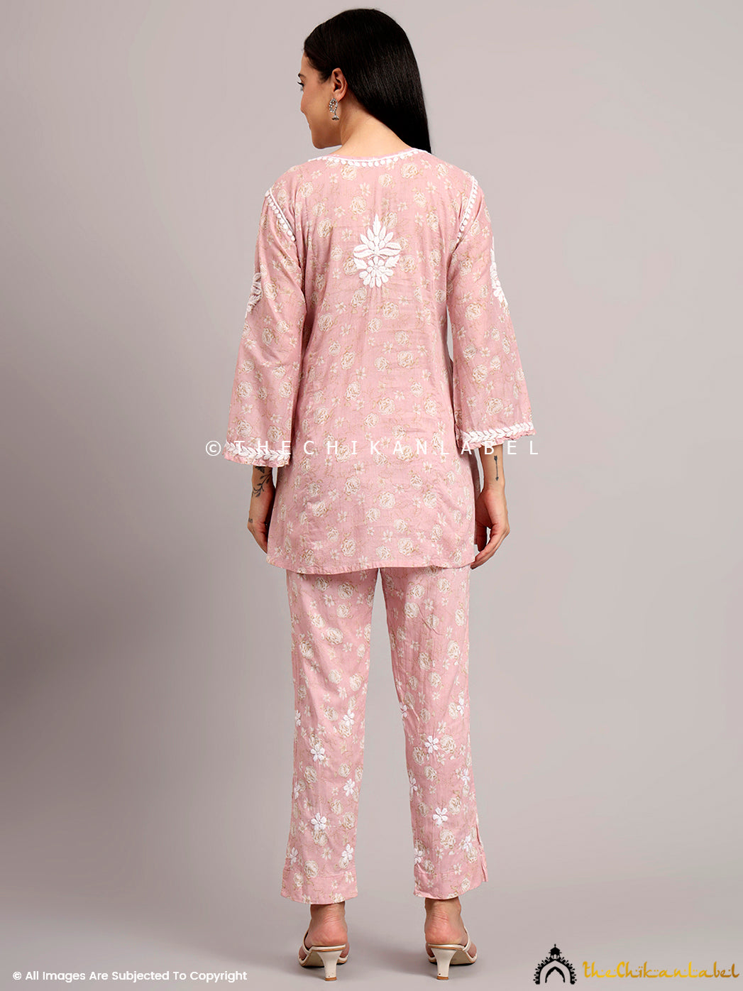 Vedika Mulmul Cotton Chikankari Co-ord Set - Pink