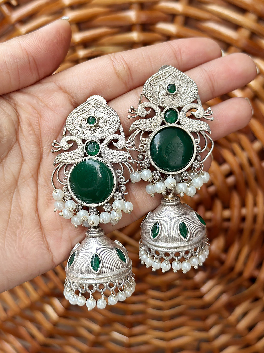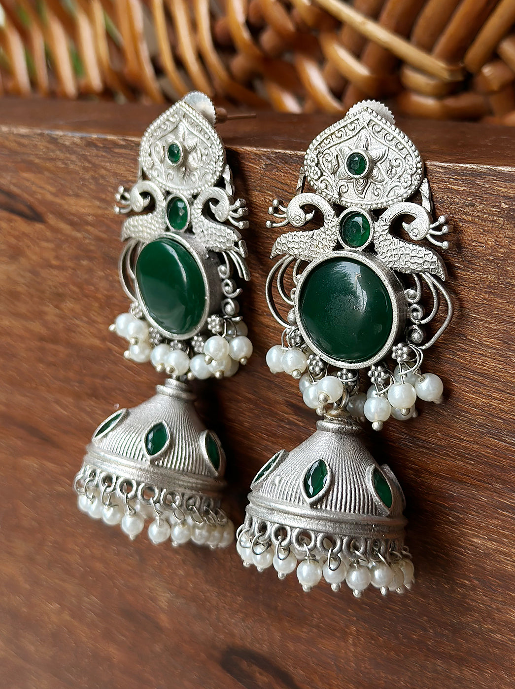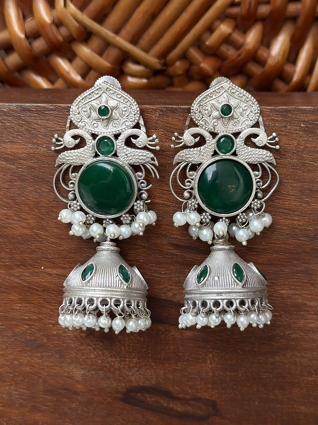 Silver Tone Earring With Green Pearl Handcrafted Fashion Jewelry