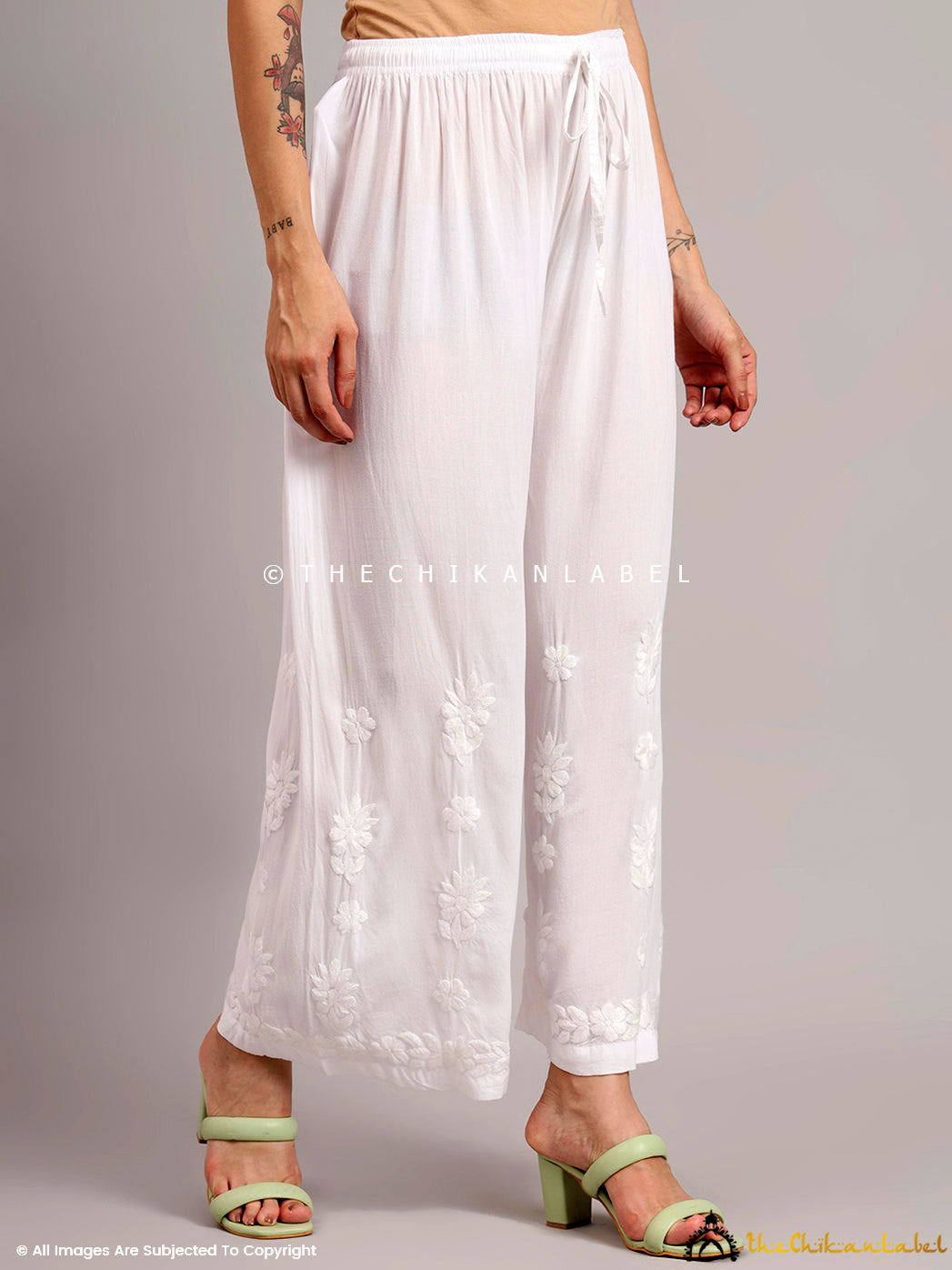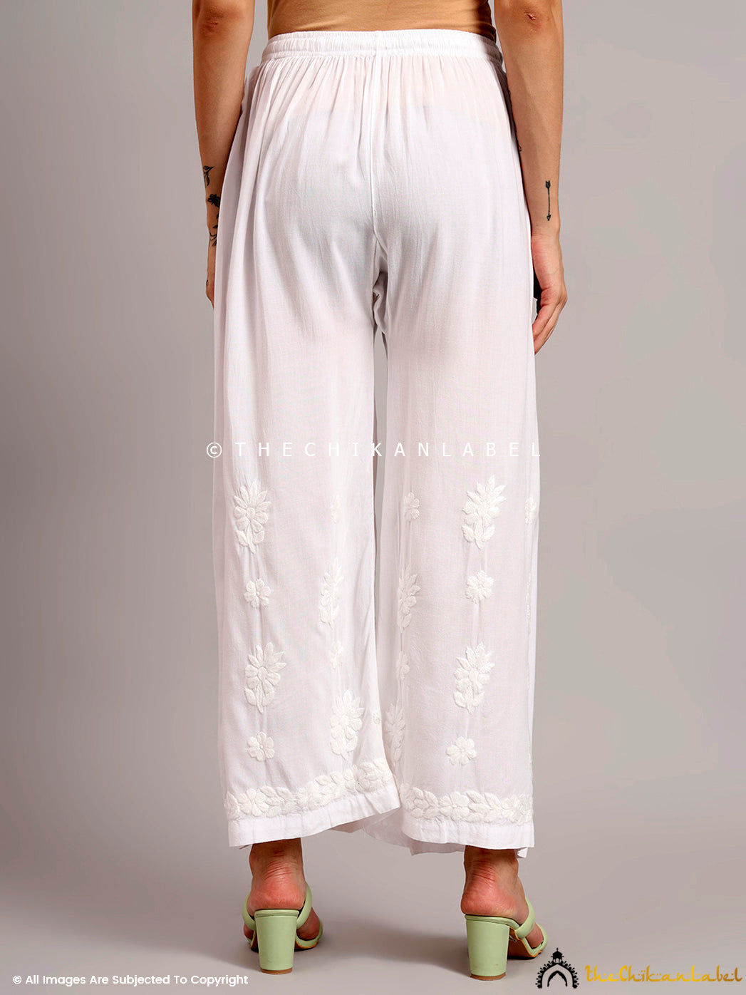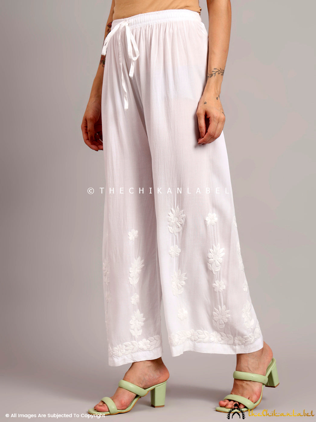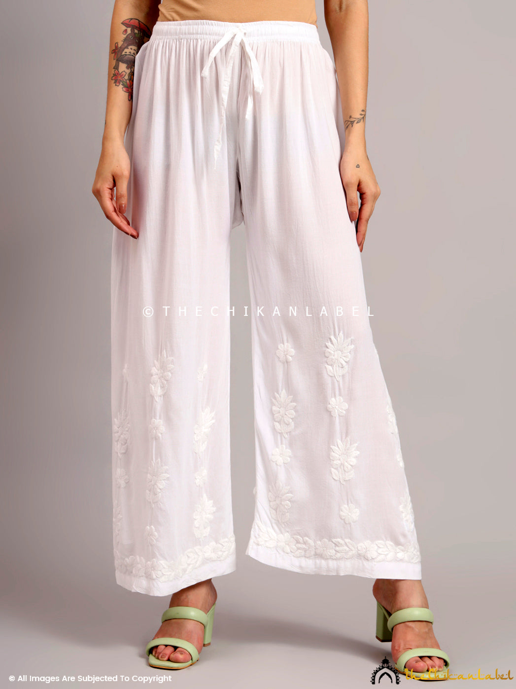 Chikankari palazzo crafted in breathable modal fabric with a relaxed straight cut, perfect for casual and festive wear