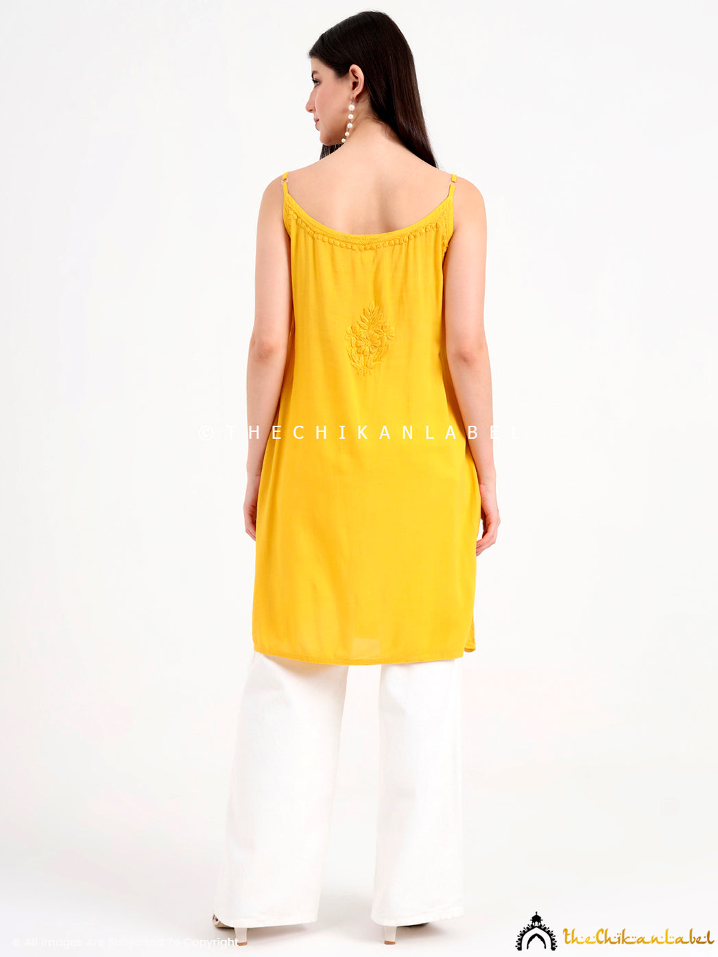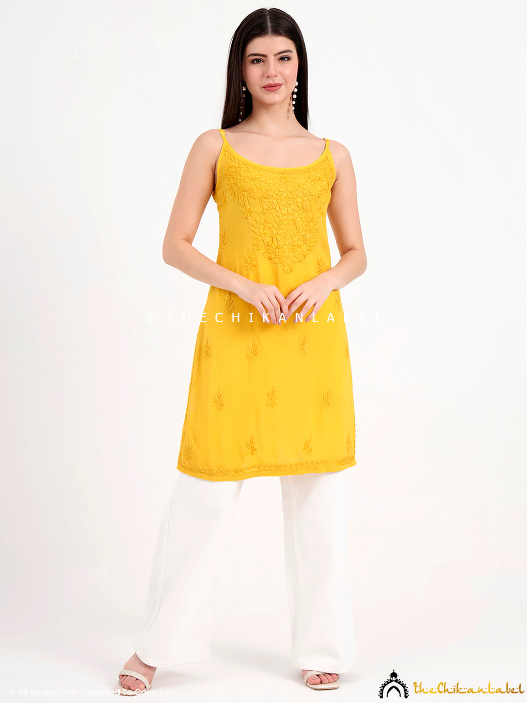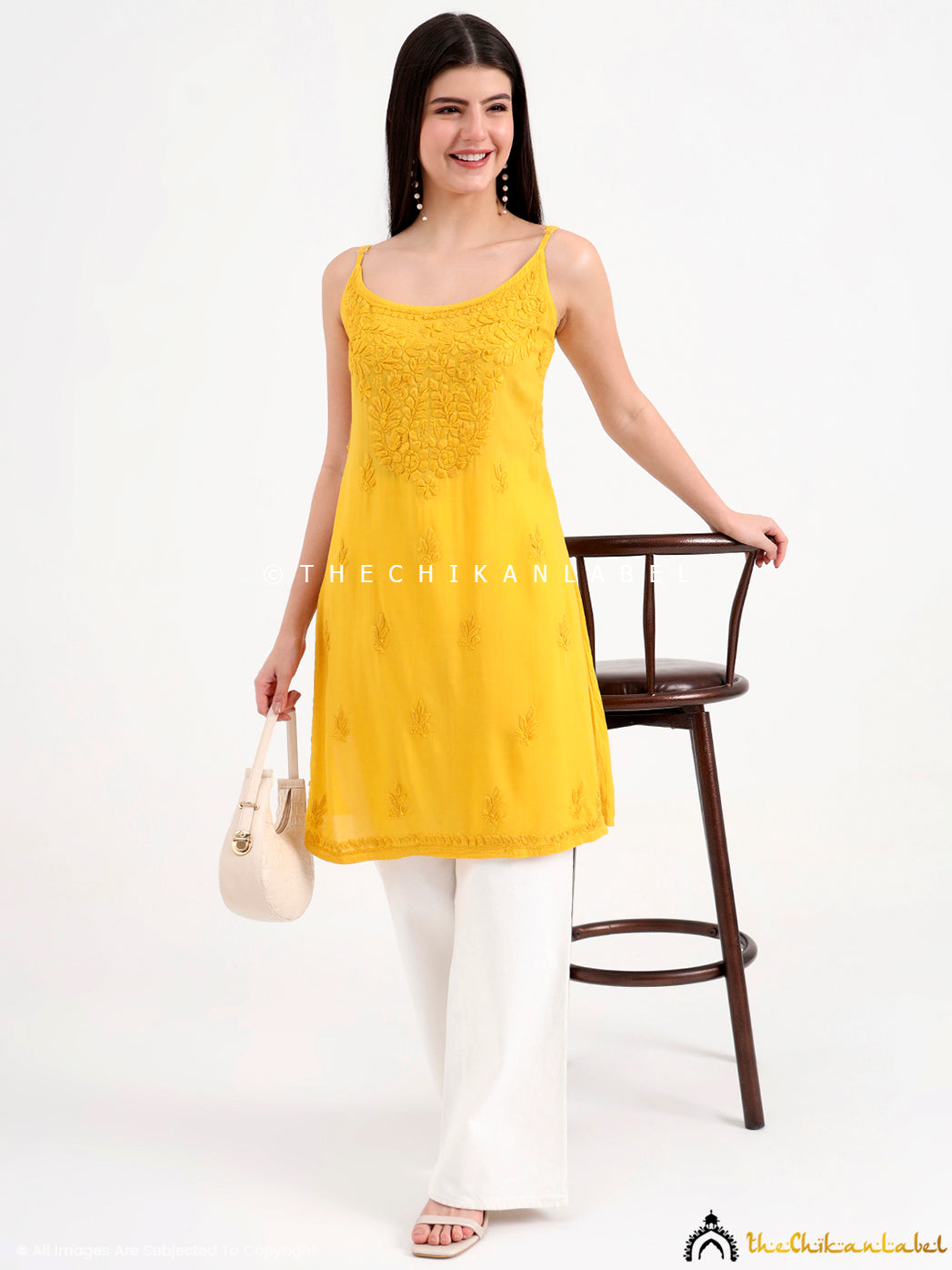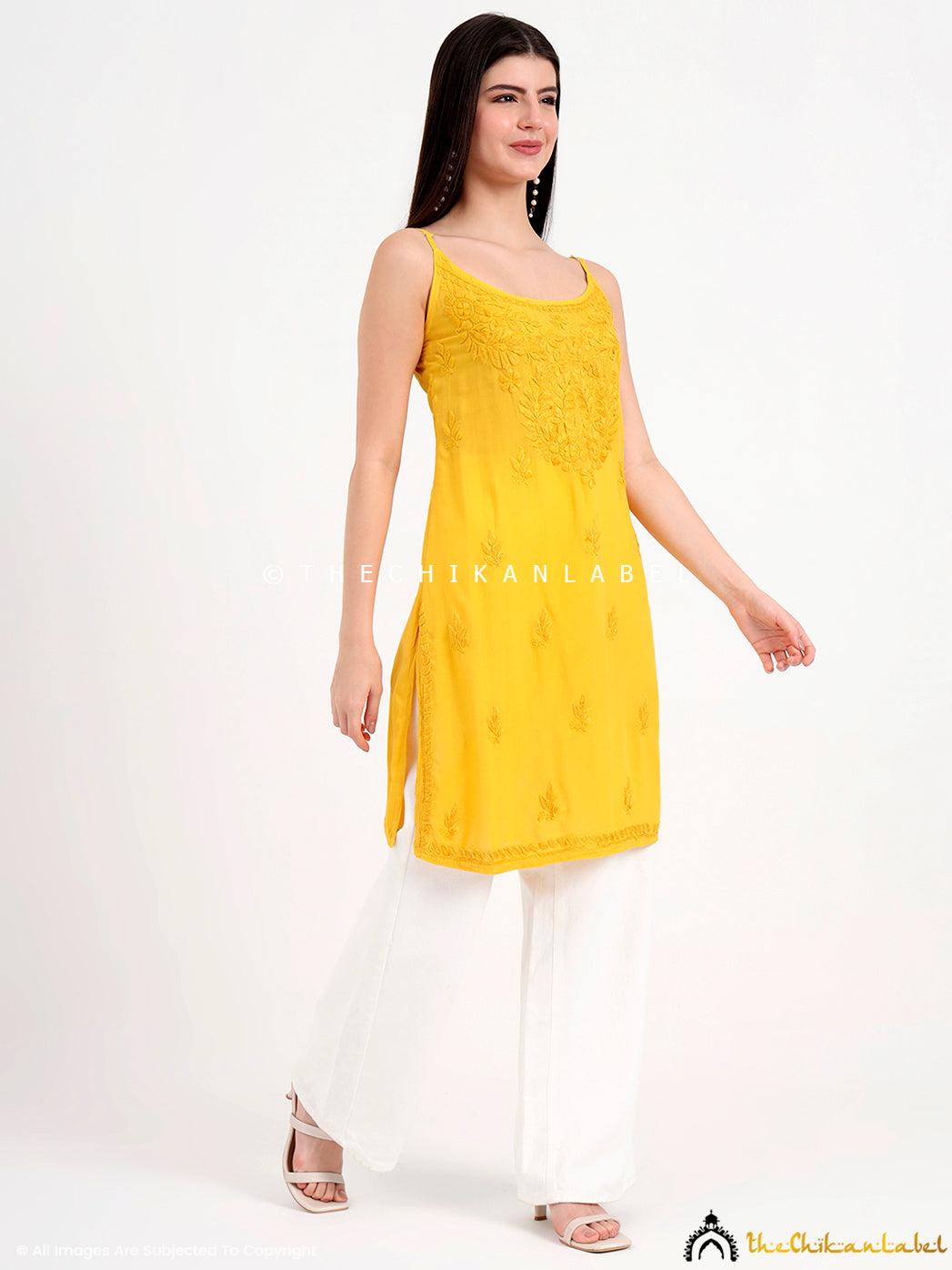 Avleen Modal Chikankari Strappy Short Kurta - Yellow